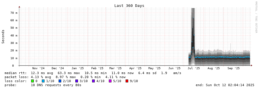 traceroute to 2620:fe::fe (2620:fe::fe), 30 hops max, 80 byte packets - Generated at 2025-10-12 01:15:02