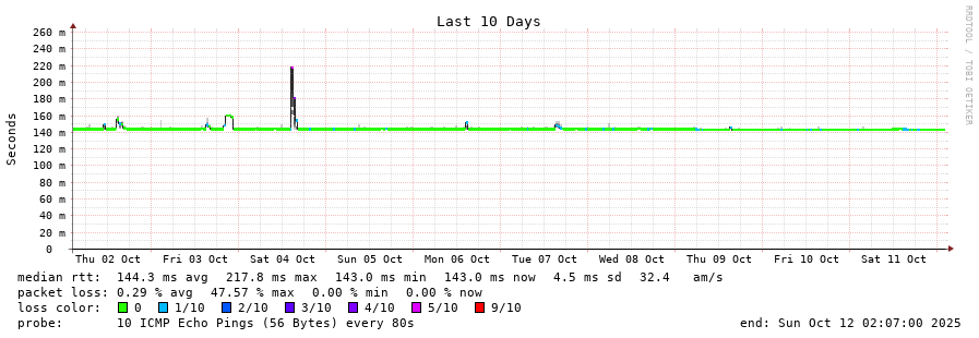 10 > 125.214.191.37 (125.214.191.37) [AS18001] 142.466ms 142.497ms 142.440ms