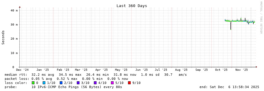 traceroute to 2a03:bb40:1::b (2a03:bb40:1::b), 30 hops max, 80 byte packets - Generated at 2025-12-06 13:45:01