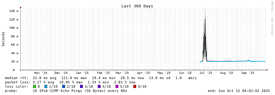 traceroute to 2001:41d0:302:1000::18:665e (2001:41d0:302:1000::18:665e), 30 hops max, 80 byte packets - Generated at 2025-10-12 03:45:01