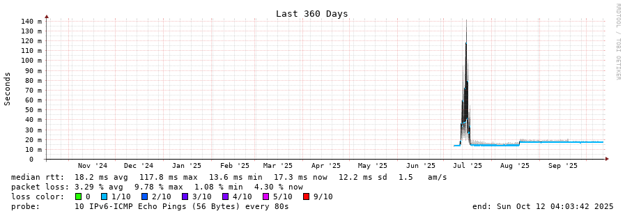 traceroute to 2001:41d0:404:100::3a1 (2001:41d0:404:100::3a1), 30 hops max, 80 byte packets - Generated at 2025-10-12 04:00:01